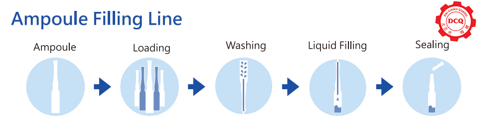 Quy trình vận hành liên hoàn: Hệ thống thực hiện tuần tự và hoàn toàn tự động các công đoạn: Nạp ống rỗng ➔ Rửa chai bằng sóng siêu âm ➔ Chiết rót chất lỏng ➔ Hàn kín (khò nhiệt mỏ ống).
