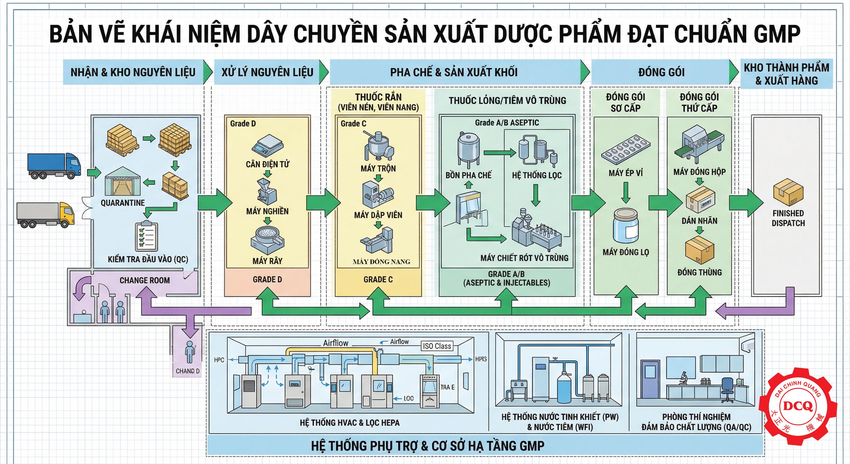 2. Các hệ thống dây chuyền Dược phẩm mũi nhọn tại Đại Chính Quang