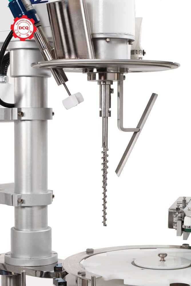 Trục vít định lượng độ chính xác cao: Trục vít (Auger) được gia công đúc nguyên khối từ Inox, định lượng nguyên liệu bằng số vòng quay với độ chính xác vượt trội, sai số kiểm soát chặt chẽ trong khoảng ±1% đến ±3%. Quá trình chiết rót có sự hỗ trợ của cánh khuấy (agitator) liên tục đảo đều nguyên liệu, chống tình trạng rỗng ruột hay vón cục, gia tăng độ chuẩn xác của mỗi mẻ chiết.