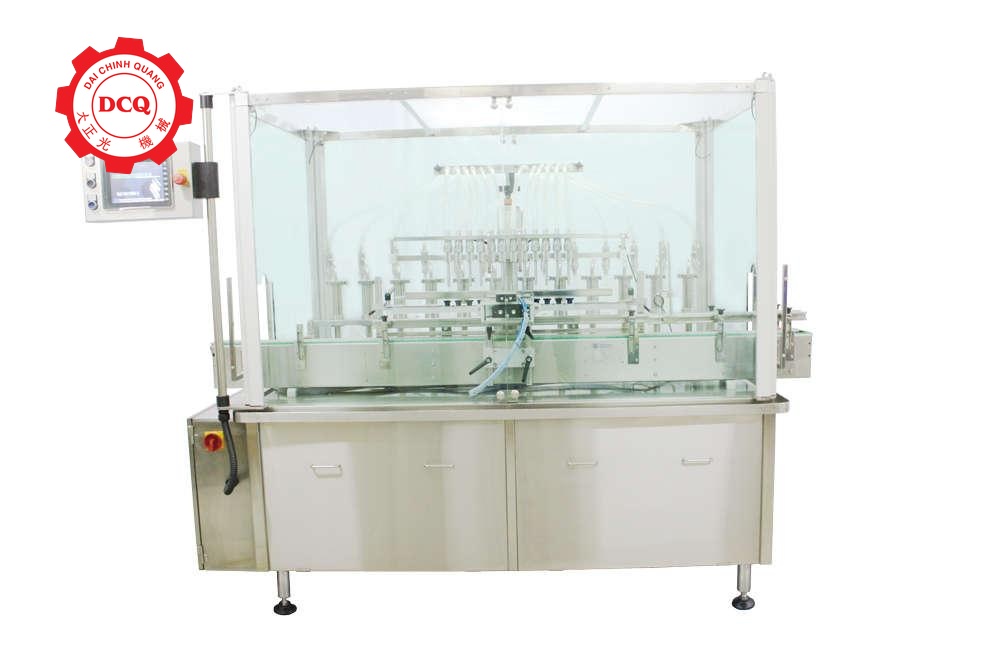 Đây là hệ thống chiết rót định lượng hoàn toàn tự động, được thiết kế để xử lý linh hoạt từ các dung dịch dạng lỏng thông thường đến các loại dung dịch có độ nhớt và đậm đặc cao. Máy vận hành theo cơ chế chuyển động tịnh tiến (linear motion), kết hợp bộ điều khiển logic PLC, các cảm biến thông minh và hệ thống xi-lanh khí nén để tối ưu hóa quy trình tự động hóa. Đạt chuẩn cGMP, máy có ưu điểm vận hành trực quan, cho phép thay đổi dung tích chiết rót trong thời gian ngắn, mang lại hiệu quả kinh tế vượt trội với tiêu chí "một máy - đa dụng".